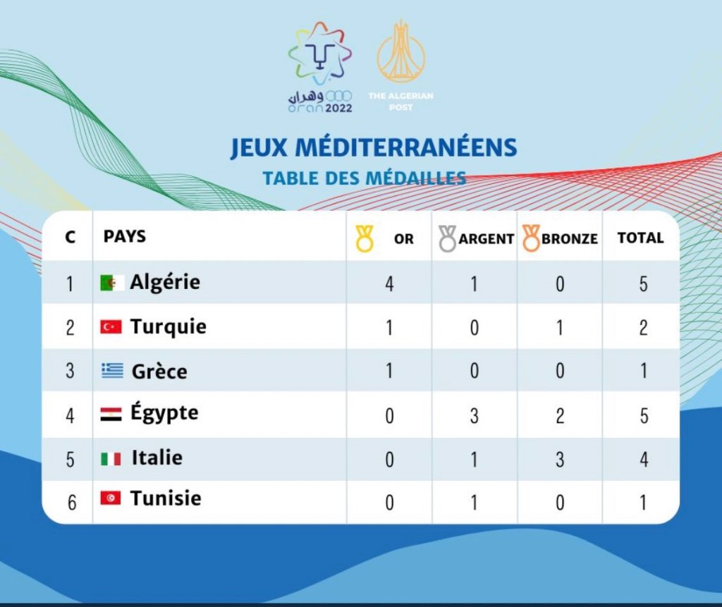 With a total of five medals, four gold and one silver, Algeria surpass their performance from the 2018 Mediterranean Games in just one day.